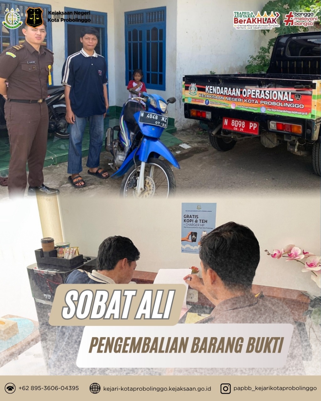 Pada hari Selasa, tanggal 24 Juni 2025, Kejaksaan Negeri Kota Probolinggo telah melaksanakan Pelayanan “SOBAT ALI” Solusi Barang Bukti Kembali.